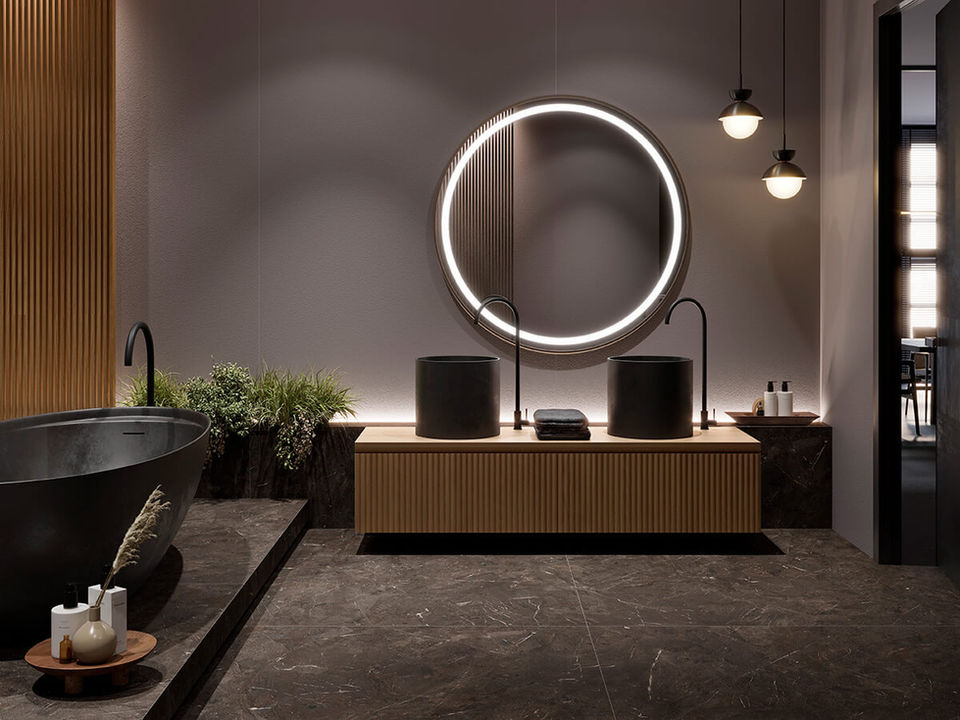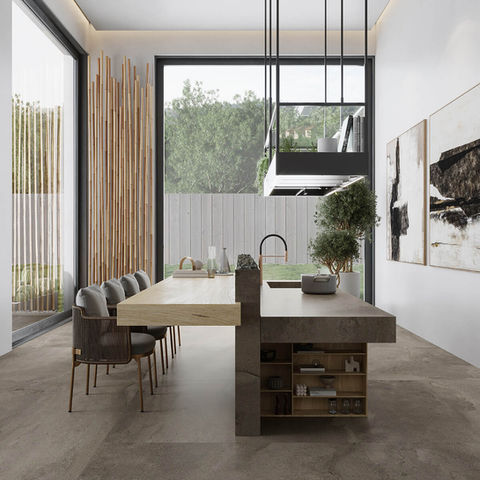 Ares ist eine Fusion aus Zement und Stein, eine warme Oberfläche in Grautönen, ideal zur Verwendung in Ambienten aller Art.