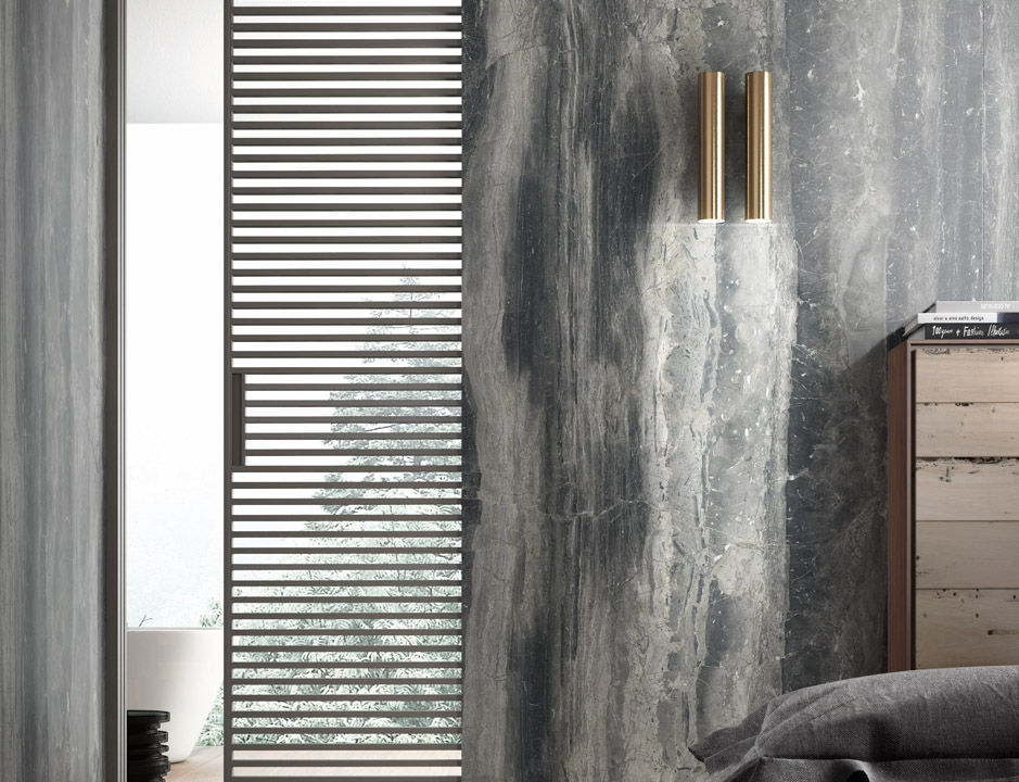 Die ursprüngliche Schönheit des Steins trifft auf die außergewöhnliche Widerstandsfähigkeit des Feinsteinzeugs, das die Ausgangsstoffe getreu interpretiert: Ceppo di Gré, Gris du Gent, Granito Black und Pietra di Vals. Ideale Platten für die Verkleidung von Gewerberäumen und Wohnbereichen mit charakterstarkem Design und technischen Spitzenleistungen.